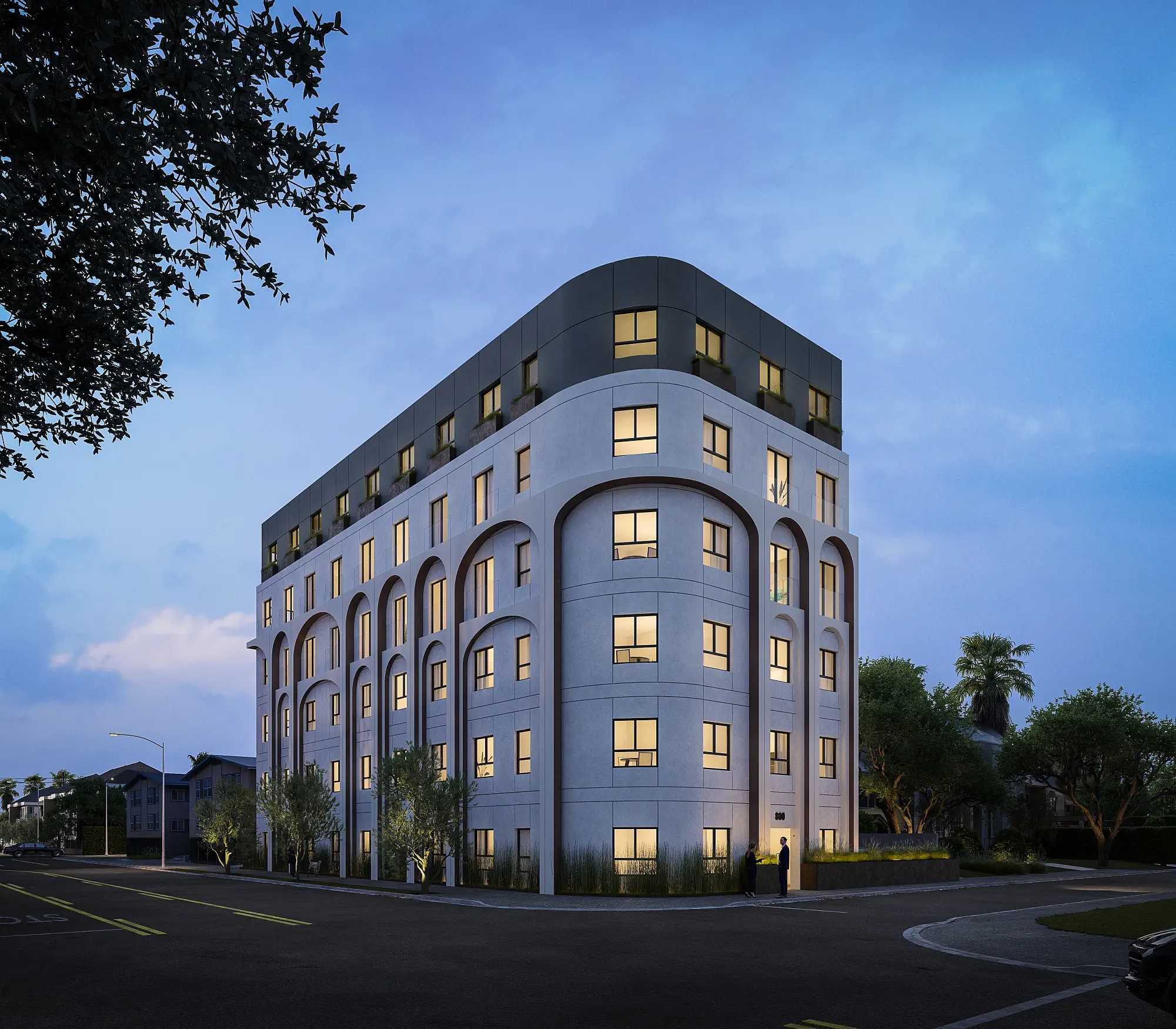 Meticulously articulated arches and a palette of varied colors adorn the building’s facade, serving as a subtle yet profound tribute to the area’s historical character. This thoughtful integrations not only preserves the neighborhood’s unique identity but also creates a visually captivating environment that enriches the daily lives of its residents.